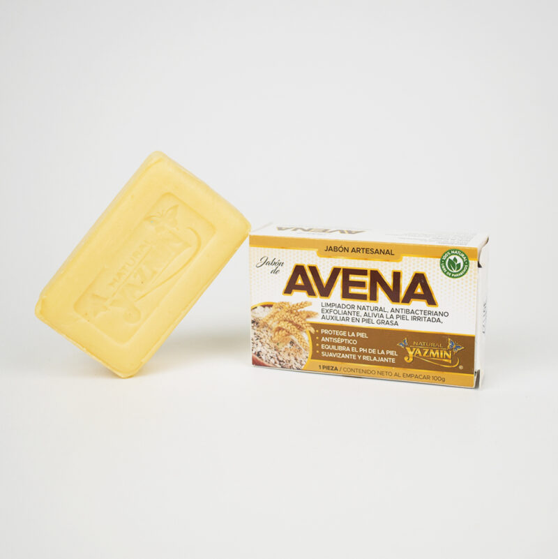 El Jabón de Avena es un auxiliar para piel grasa con efecto calmante y antiinflamatorio. Ayuda a disminuir la irritación en la piel y alergias, así como otras afecciones como eccemas, picazones, dermatitis, urticarias o psoriasis. Tiene acción limpiadora que absorbe la suciedad acumulada en los poros, previene la resequedad de la piel y elimina las células muertas e impurezas.